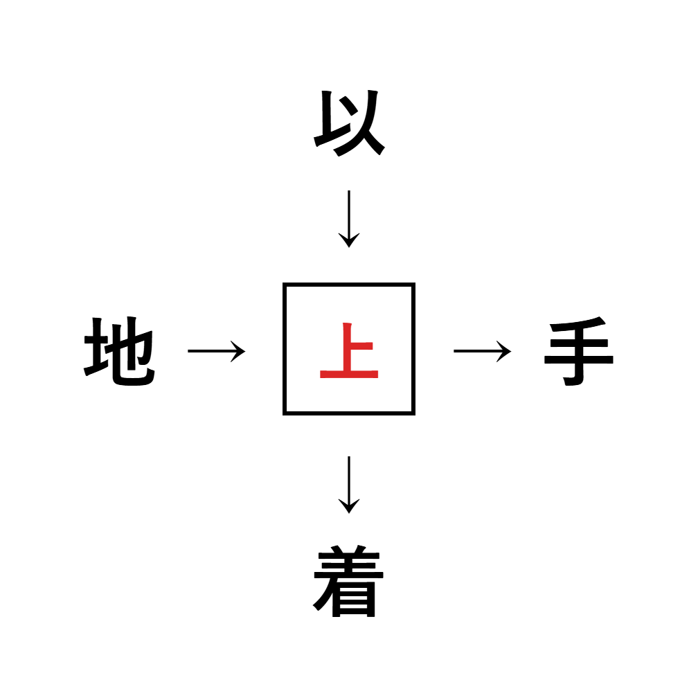 「以」「手」「着」「地」などに関係する熟語をヒントに考えてみましょう。