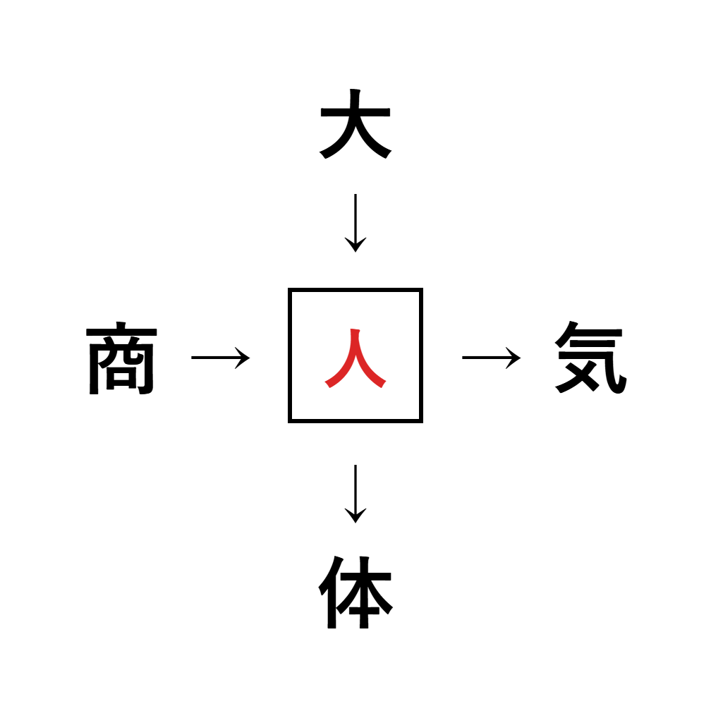 「大」「気」「体」「商」などにつながる熟語がヒントです。