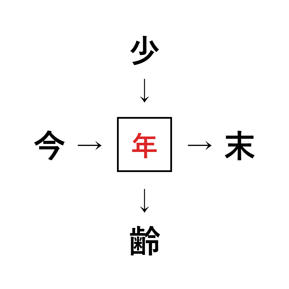 「少」「末」「齢」「今」などにつながる熟語がヒントです。