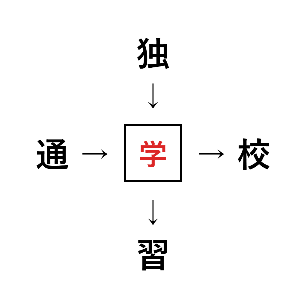 独学・学校・学習・通学のように、共通する漢字は「学」です。