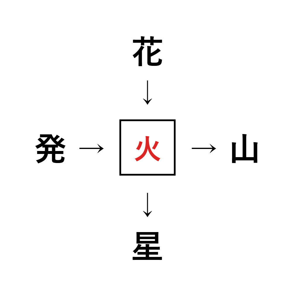 花火・火山・火星・発火のように、共通する漢字は「火」です。