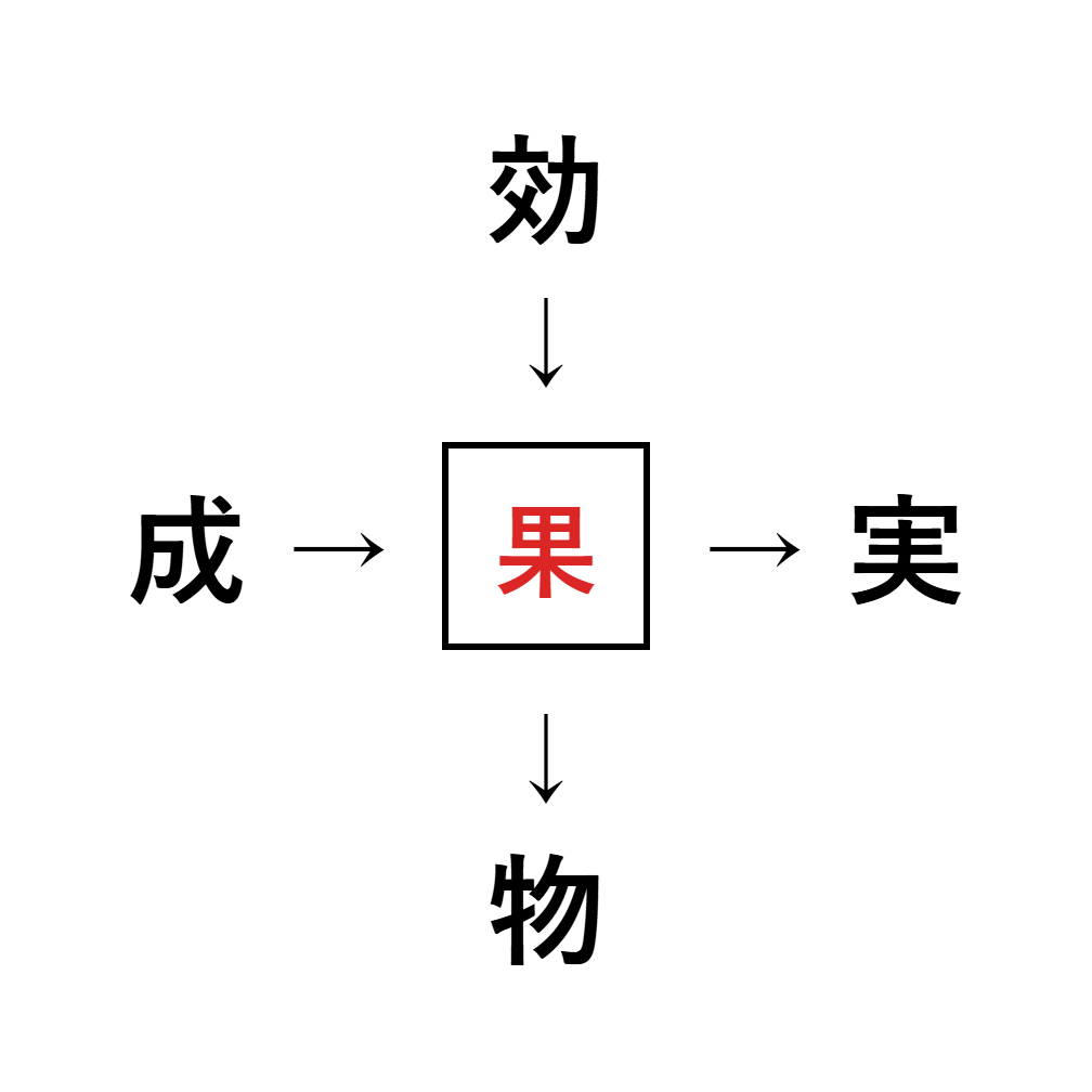 「効」「実」「物」「成」などに関係する熟語を考えてみましょう。