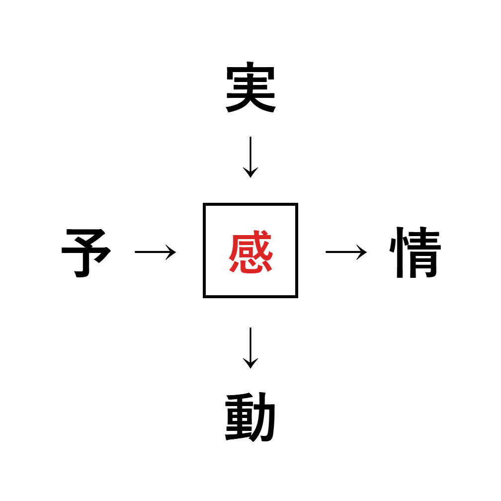 実感・感情・感動・予感のように、共通する漢字は「感」です。