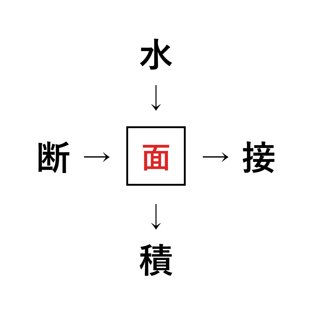 水面・面接・面積・断面のように、共通する漢字は「面」です。