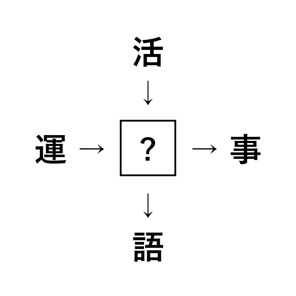 「活」「事」「語」「運」などにつながる熟語がヒントです。