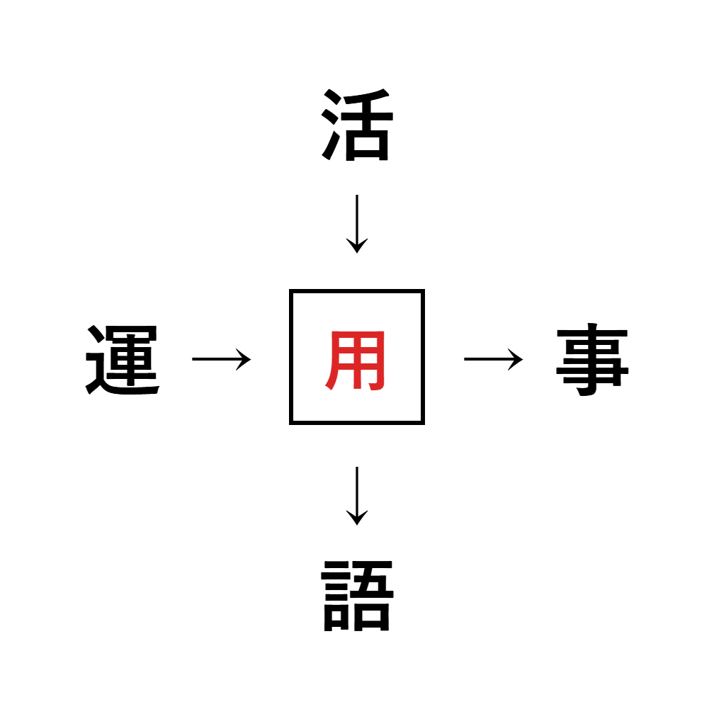活用・用事・用語・運用のように、共通する漢字は「用」です。
