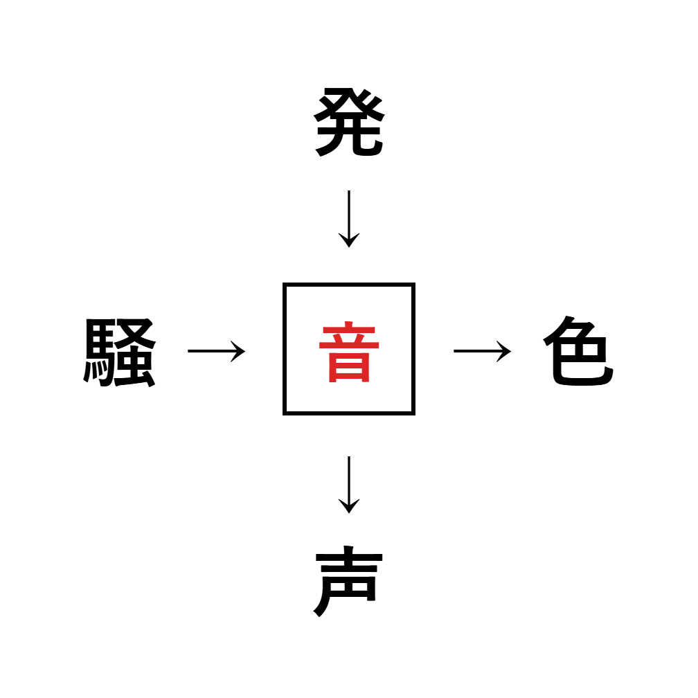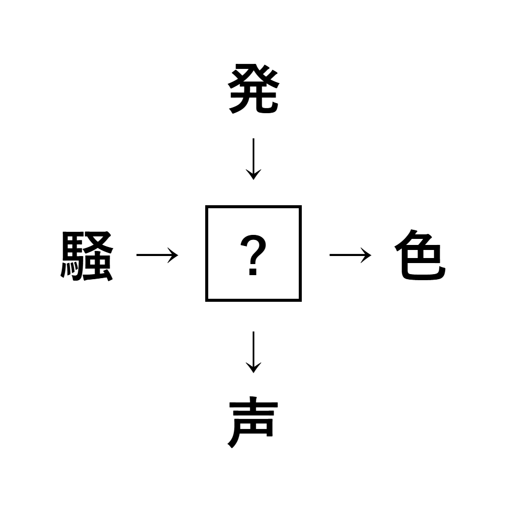 「発」「色」「声」「騒」などにつながる熟語がヒントです。