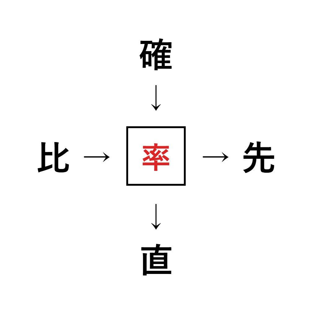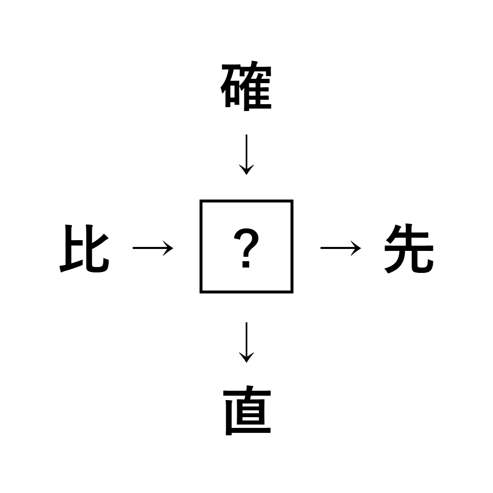 「確」「先」「直」「比」などにつながる熟語がヒントです。