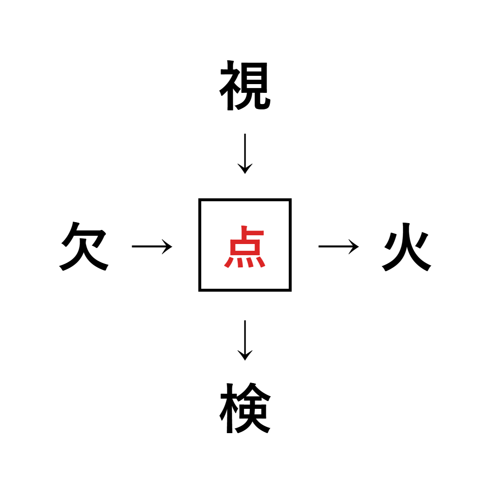 視点・点火・点検・欠点のように、共通する漢字は「点」です。