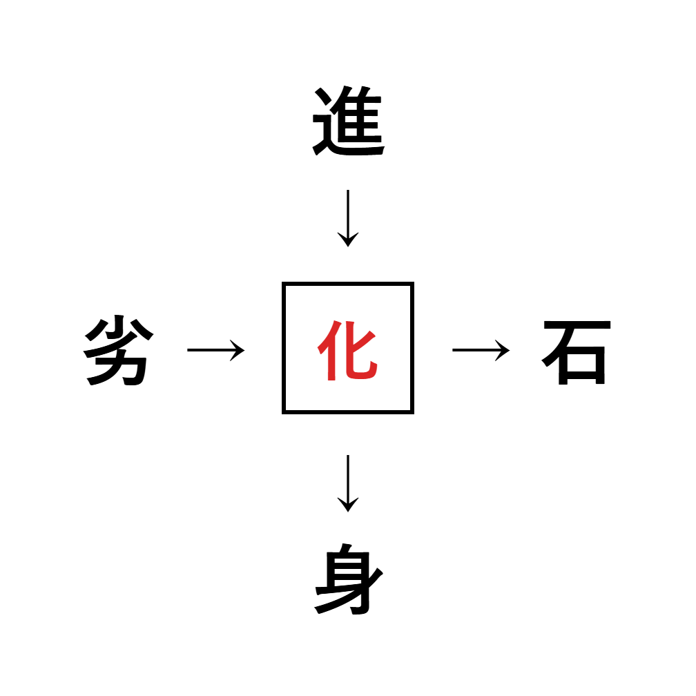 「進」「石」「身」「劣」などの熟語を思い浮かべてみましょう。