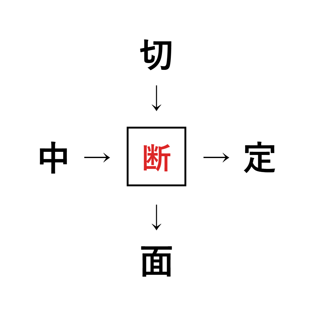 切断・断定・断面・中断のように、共通する漢字は「断」です。