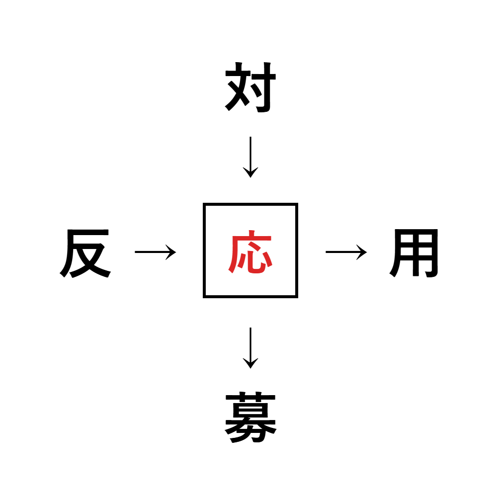 対応・応用・応募・反応のように、共通する漢字は「応」です。