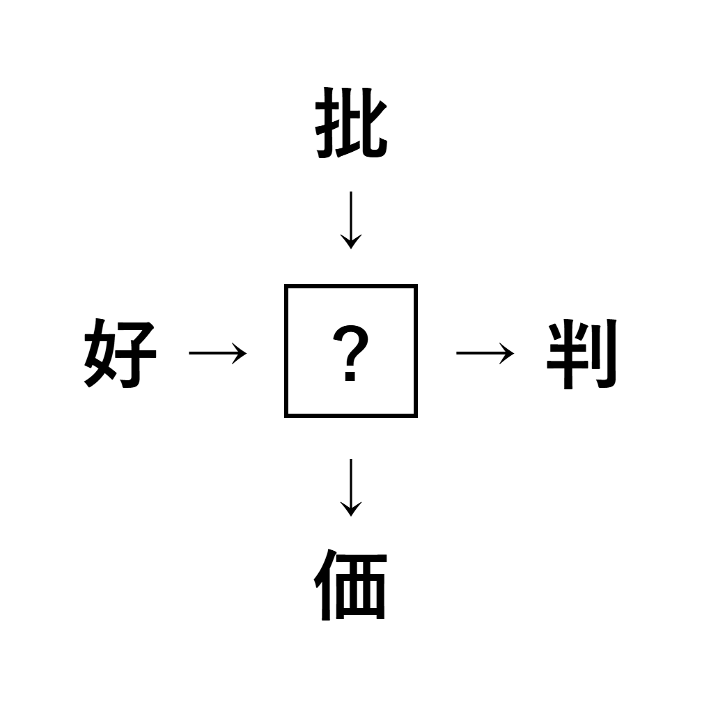 「批」「判」「価」「好」などにつながる熟語がヒントです。
