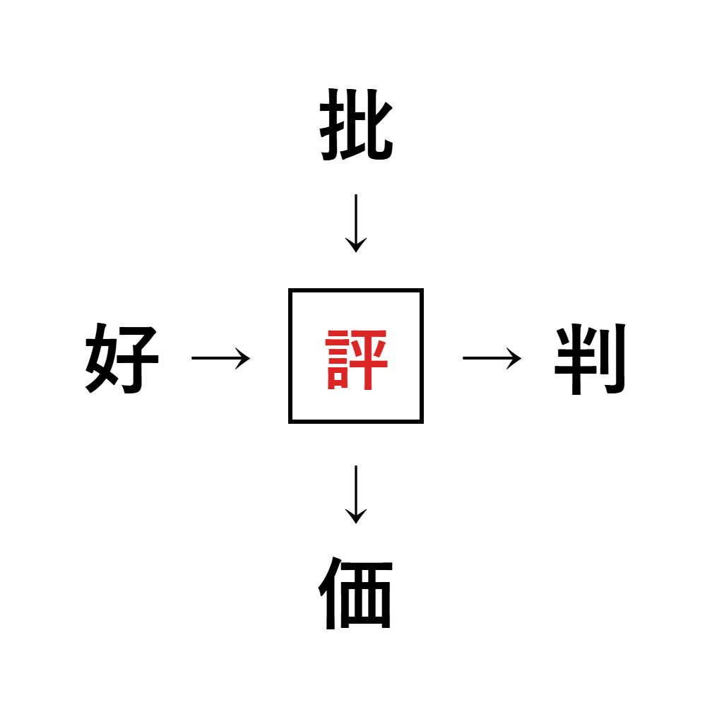 批評・評判・評価・好評のように、共通する漢字は「評」です。