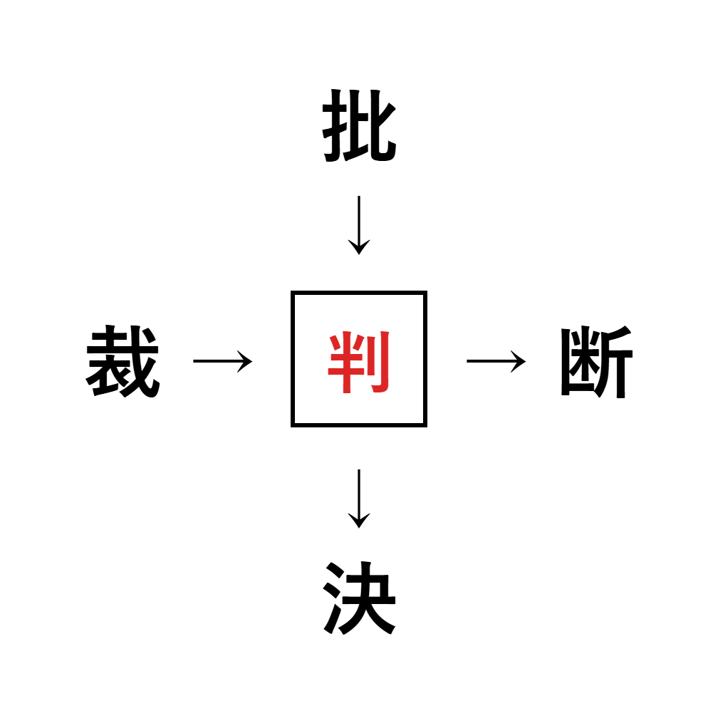 批判・判断・判決・裁判のように、共通する漢字は「判」です。