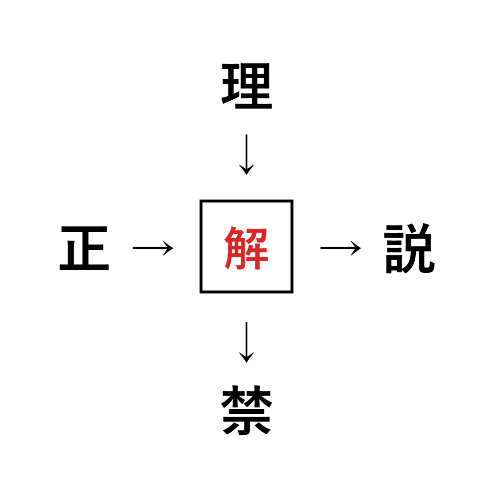 「理」「説」「禁」「正」などに関係する熟語をヒントに考えてみましょう。