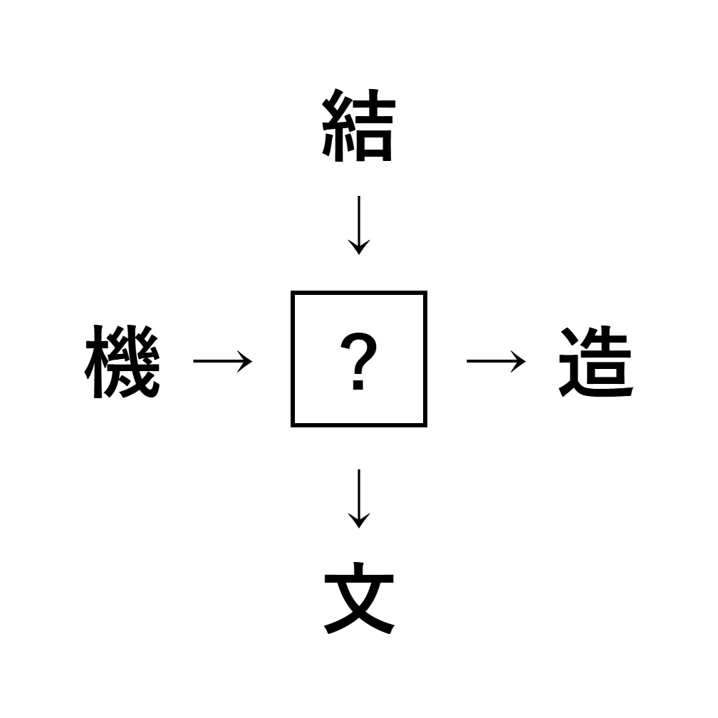 「結」「造」「文」「機」などにつながる熟語がヒントです。