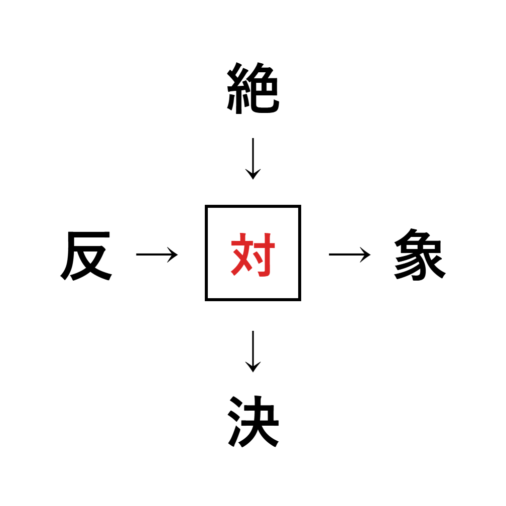 「絶」「象」「決」「反」などにつながる熟語がヒントです。