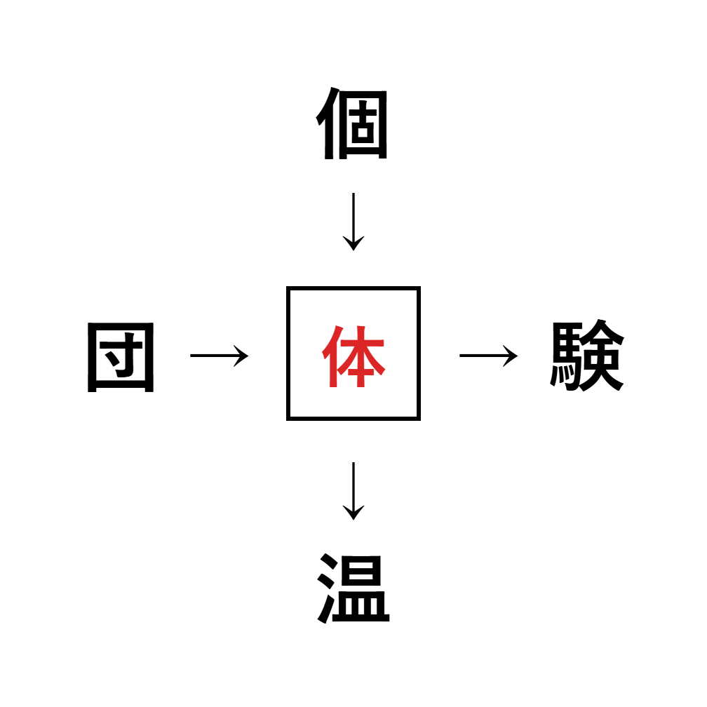 個体・体験・体温・団体のように、共通する漢字は「体」です。