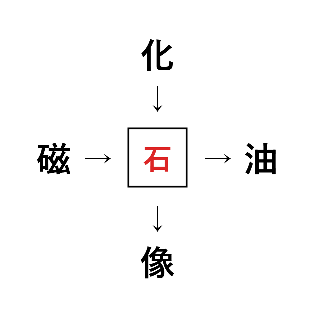 化石・石油・石像・磁石のように、共通する漢字は「石」です。