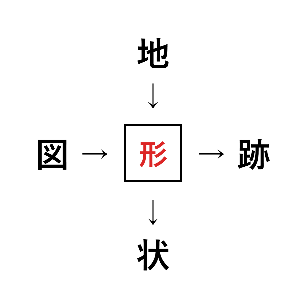 地形・形跡・形状・図形のように、共通する漢字は「形」です。