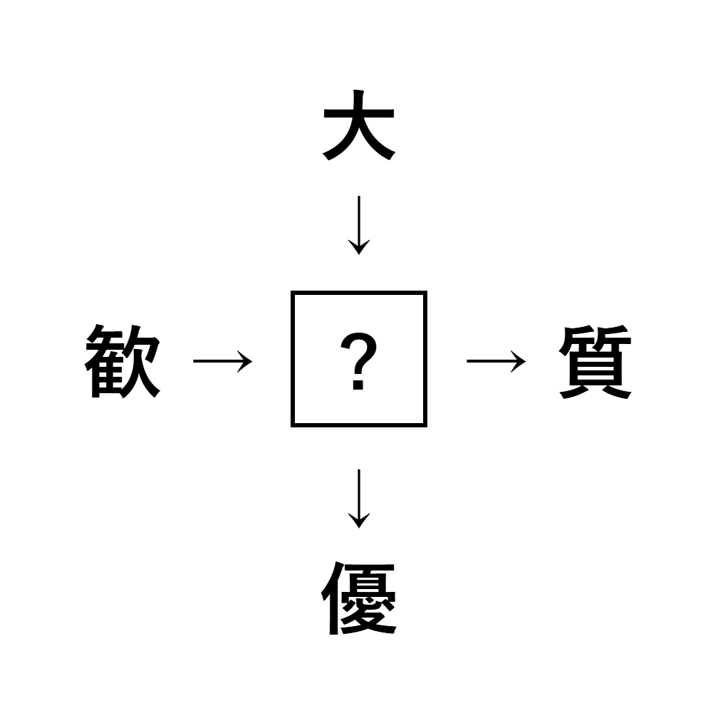 「大」「質」「優」「歓」などにつながる熟語がヒントです。