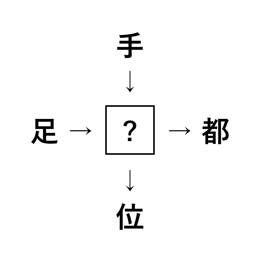 「手」「都」「位」「足」などにつながる熟語がヒントです。