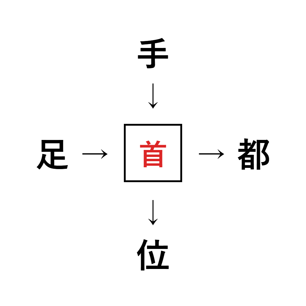手首・首都・首位・足首のように、共通する漢字は「首」です。