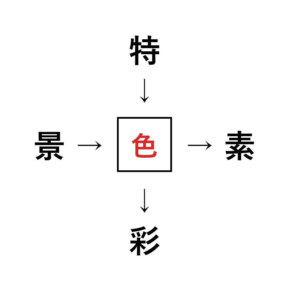 「特」「素」「彩」「景」などに関係する熟語を考えてみましょう。