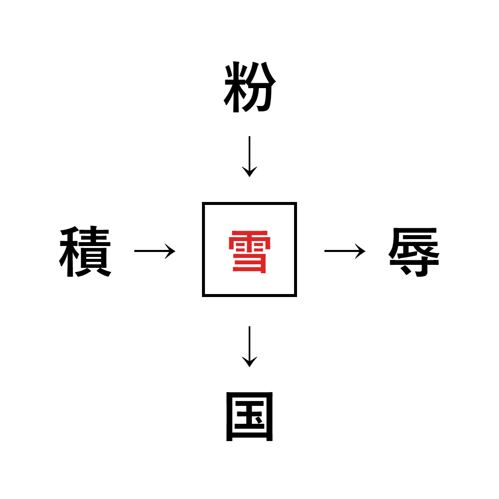 粉雪・雪辱・雪国・積雪のように、共通する漢字は「雪」です。