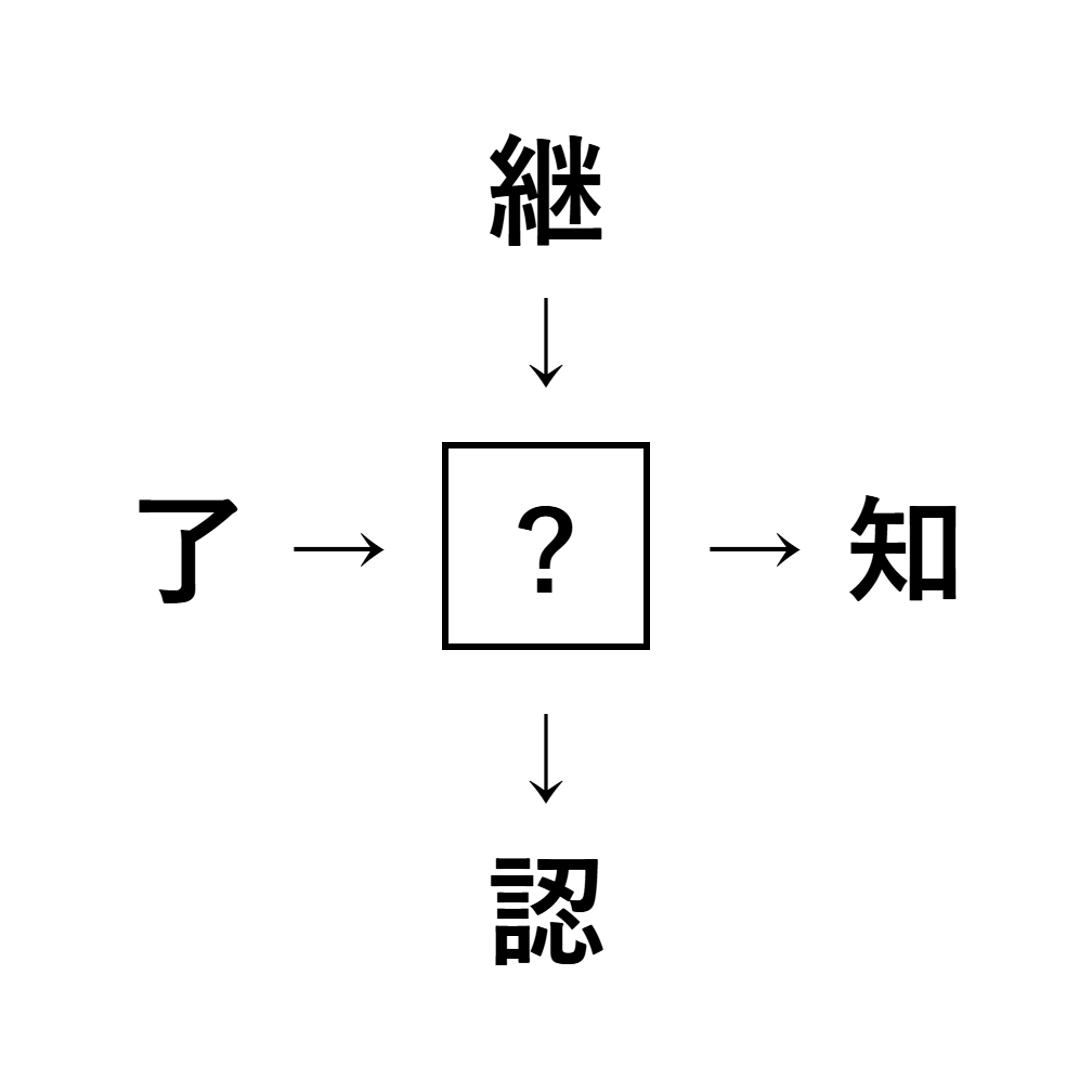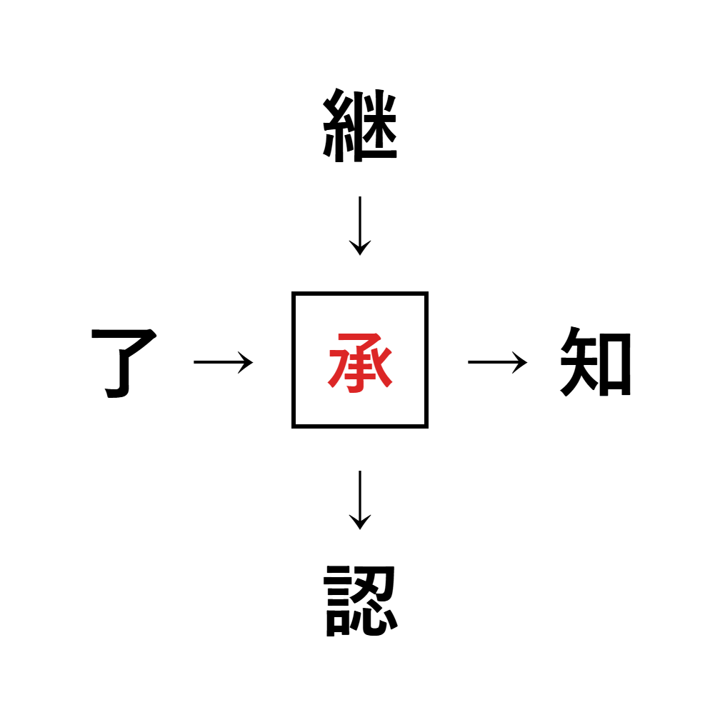 「継」「知」「認」「了」などに関係する熟語をヒントに考えてみましょう。