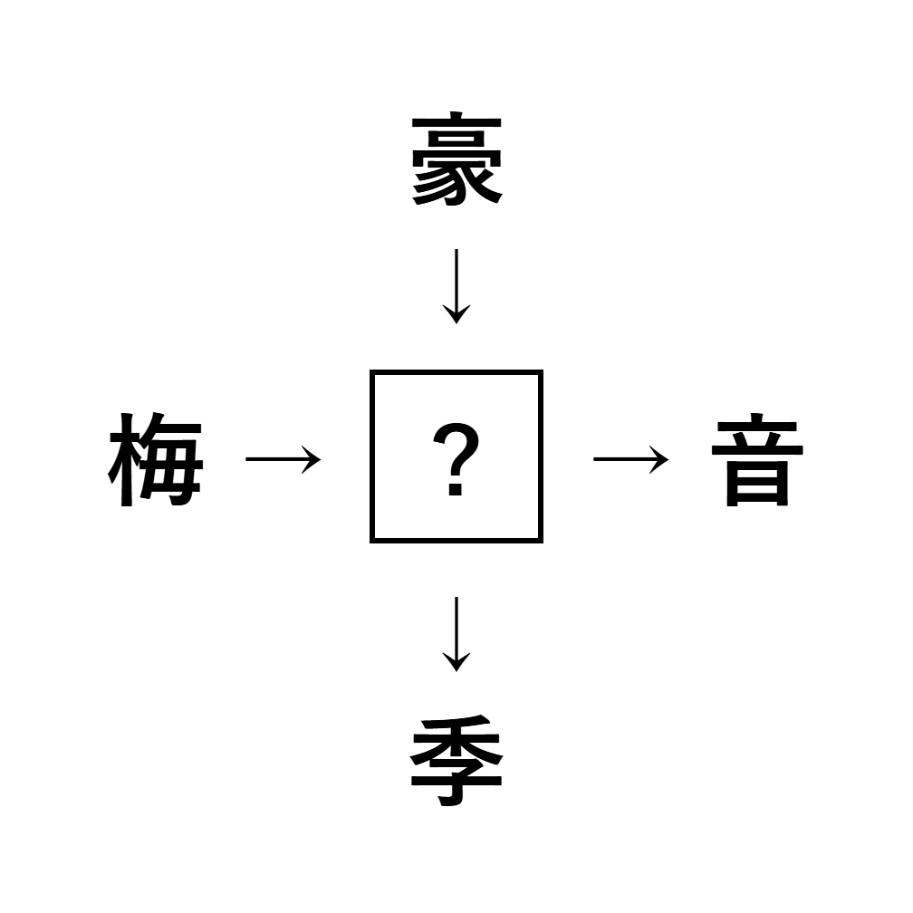 「豪」「音」「季」「梅」などにつながる熟語がヒントです。
