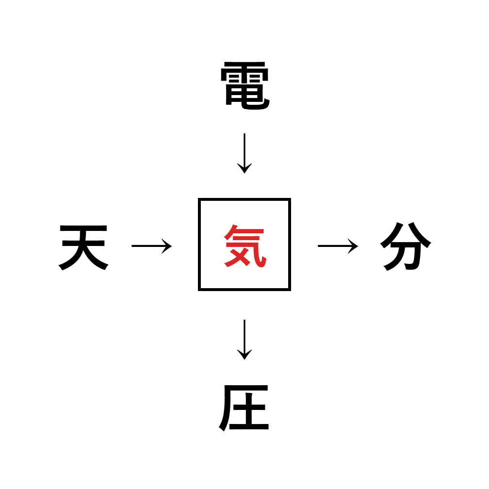 電気・気分・気圧・天気のように、共通する漢字は「気」です。
