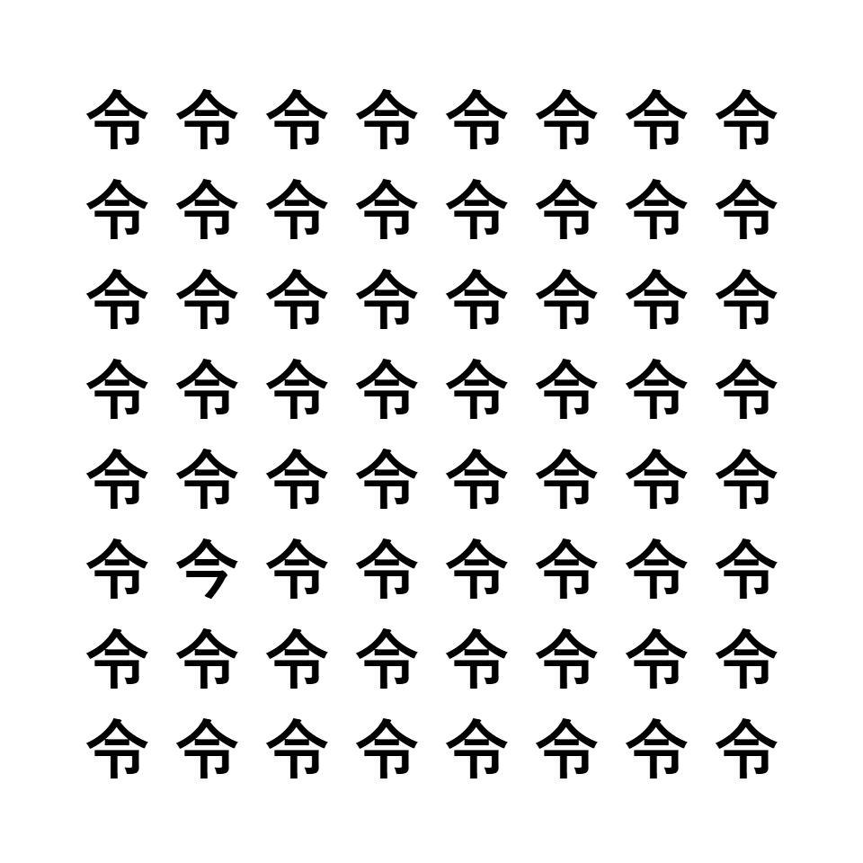 「令」と「今」では線の数が異なります。