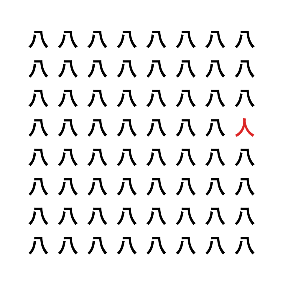 「八」と「人」の違いは線が重なっているかどうかです。
