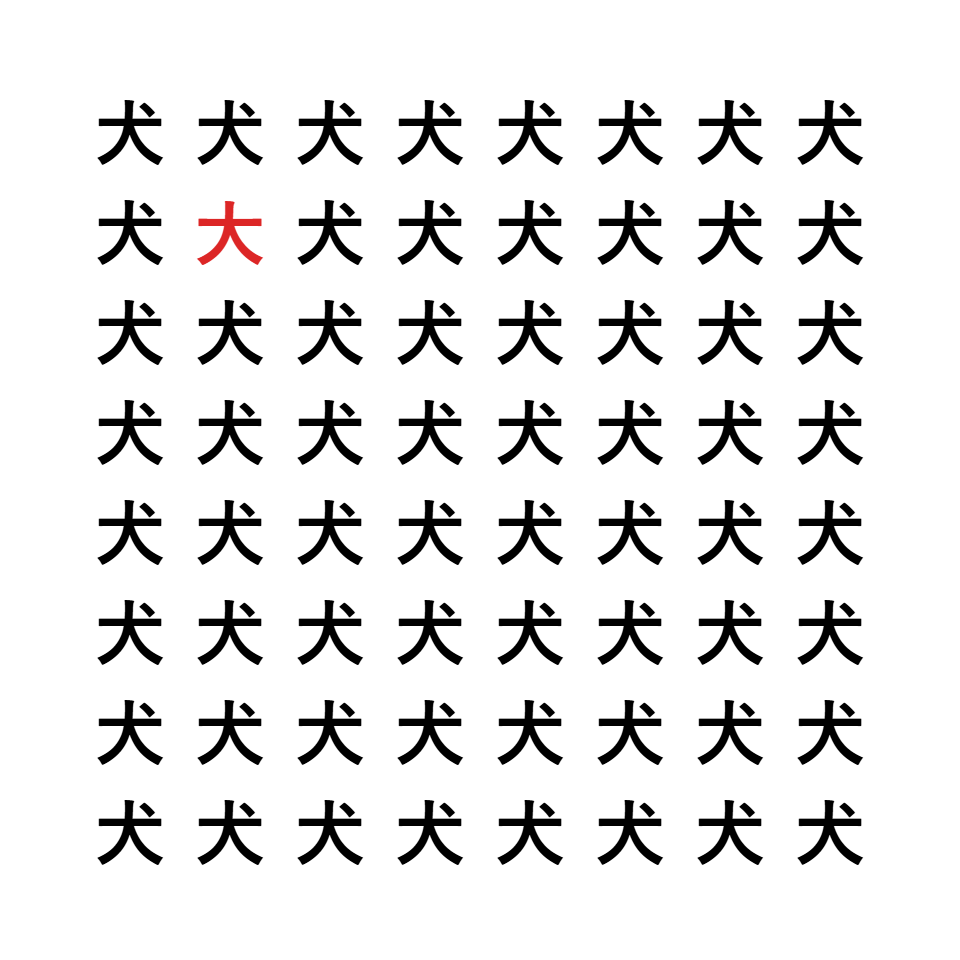 「犬」と「大」の違いは点の有無です。