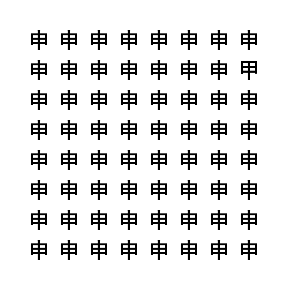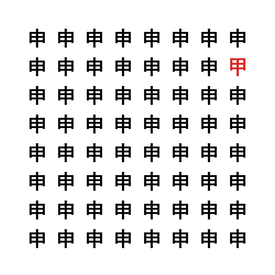 他は同じ形ですが、「甲」だけが異なる漢字になっています。