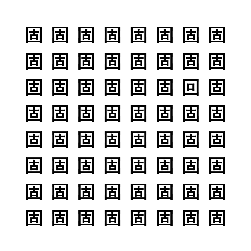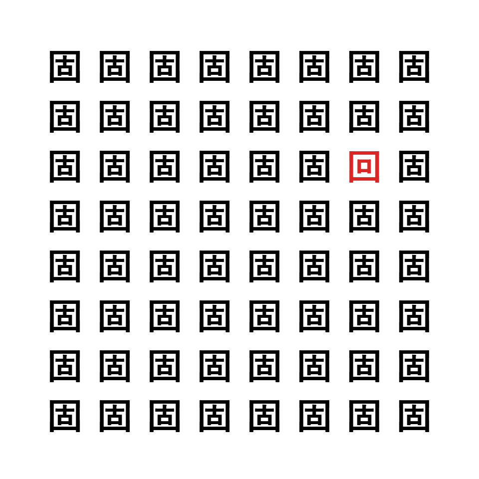 「固」と「回」で中心にある漢字が異なります。
