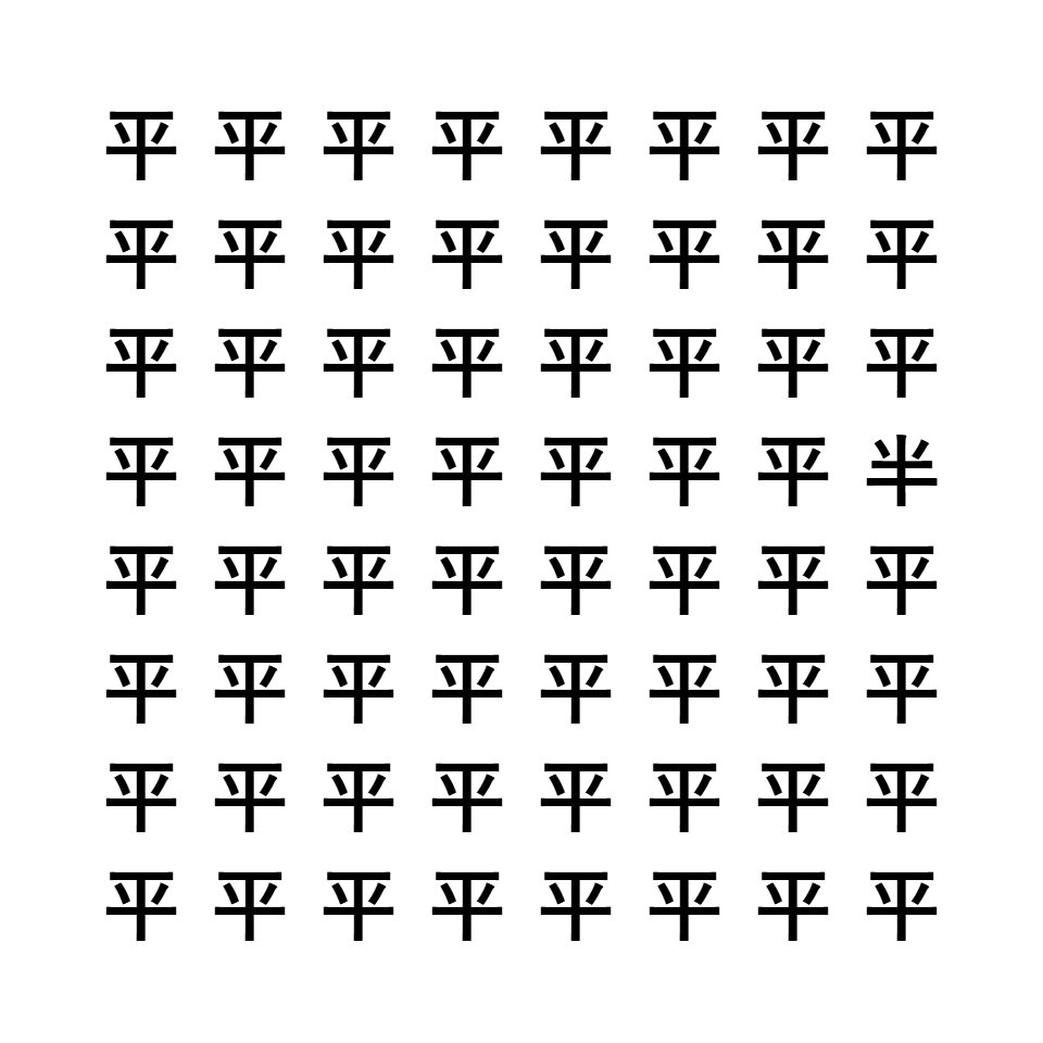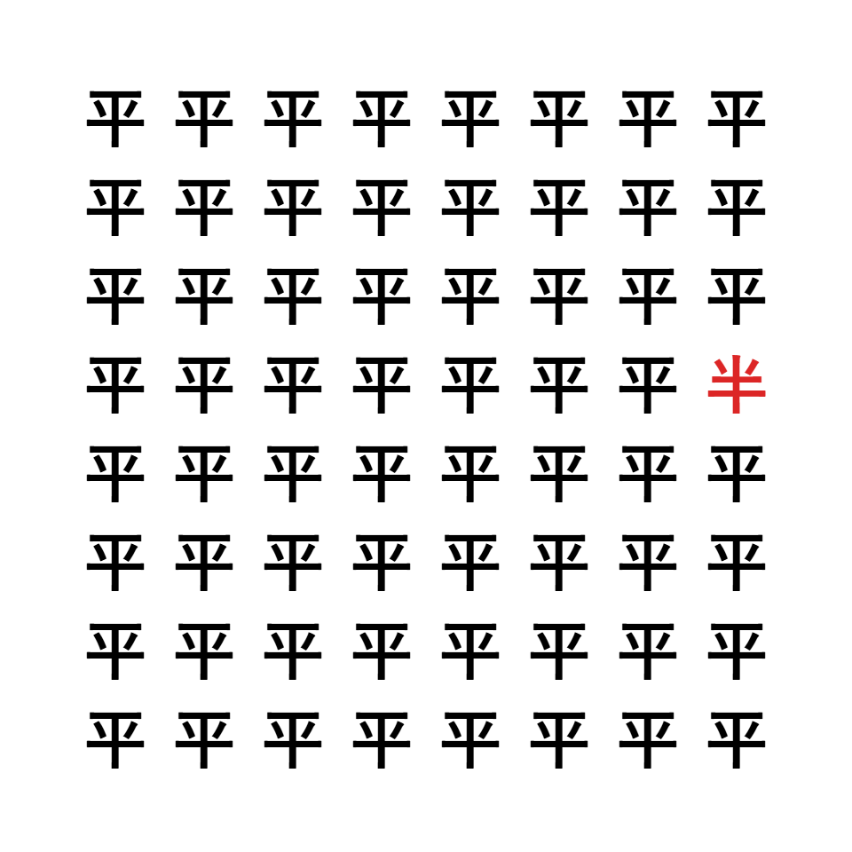 「平」と「半」では線の位置が違います。