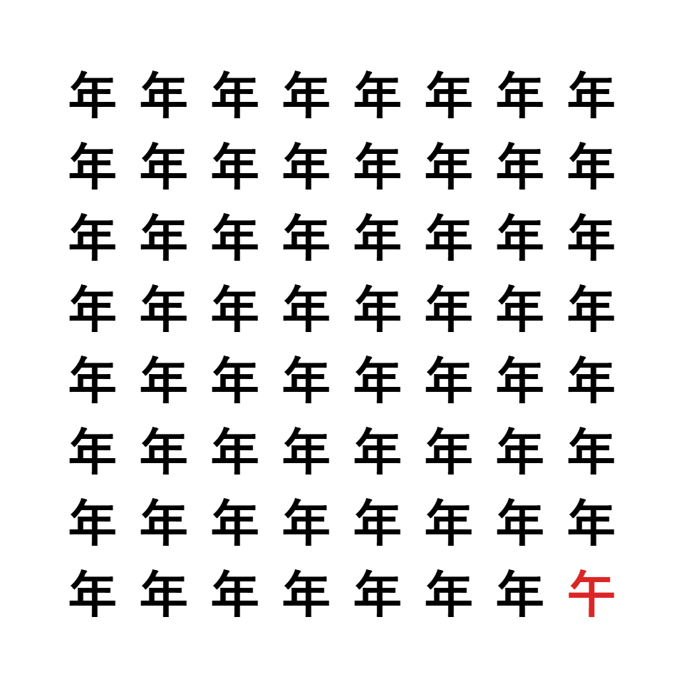 「年」と「午」で線の数と形が異なっています。