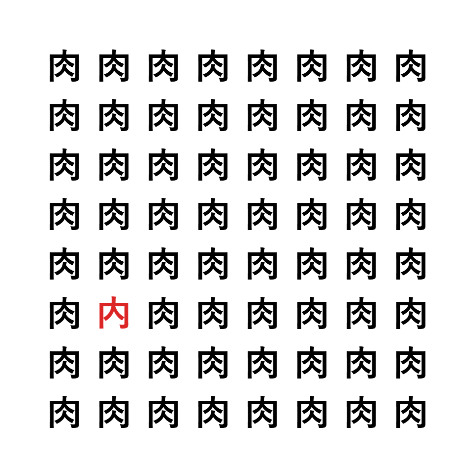 「肉」と「内」で中心の形が違います。